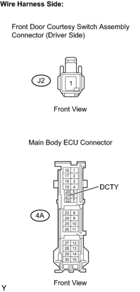 6. CHECK HARNESS AND CONNECTOR (FRONT DOOR COURTESY SWITCH - MAIN BODY ECU)
