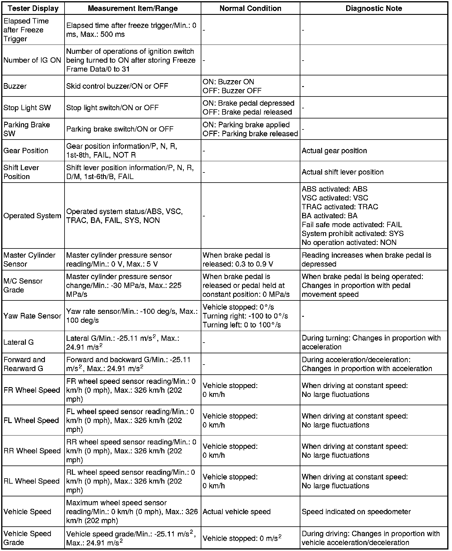 (a) Whenever a DTC is detected, the skid control ECU stores the current vehicle (sensor) state as Freeze Frame Data.