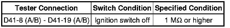 The resistance must be measured after the D41 D-CAN junction connector is disconnected.