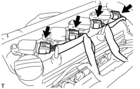 (a) Using a 14 mm spark plug wrench, install the 4 spark plugs.