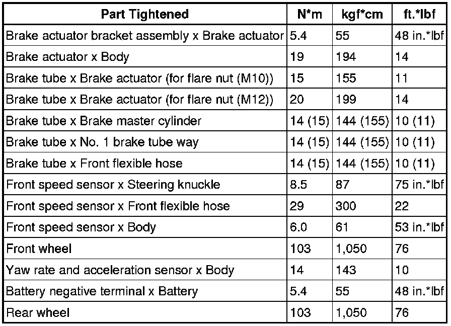 SERVICE SPECIFICATIONS: BRAKE CONTROL: TORQUE SPECIFICATIONS