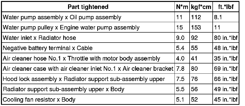 SERVICE SPECIFICATIONS: 1NZ-FE COOLING: TORQUE SPECIFICATIONS