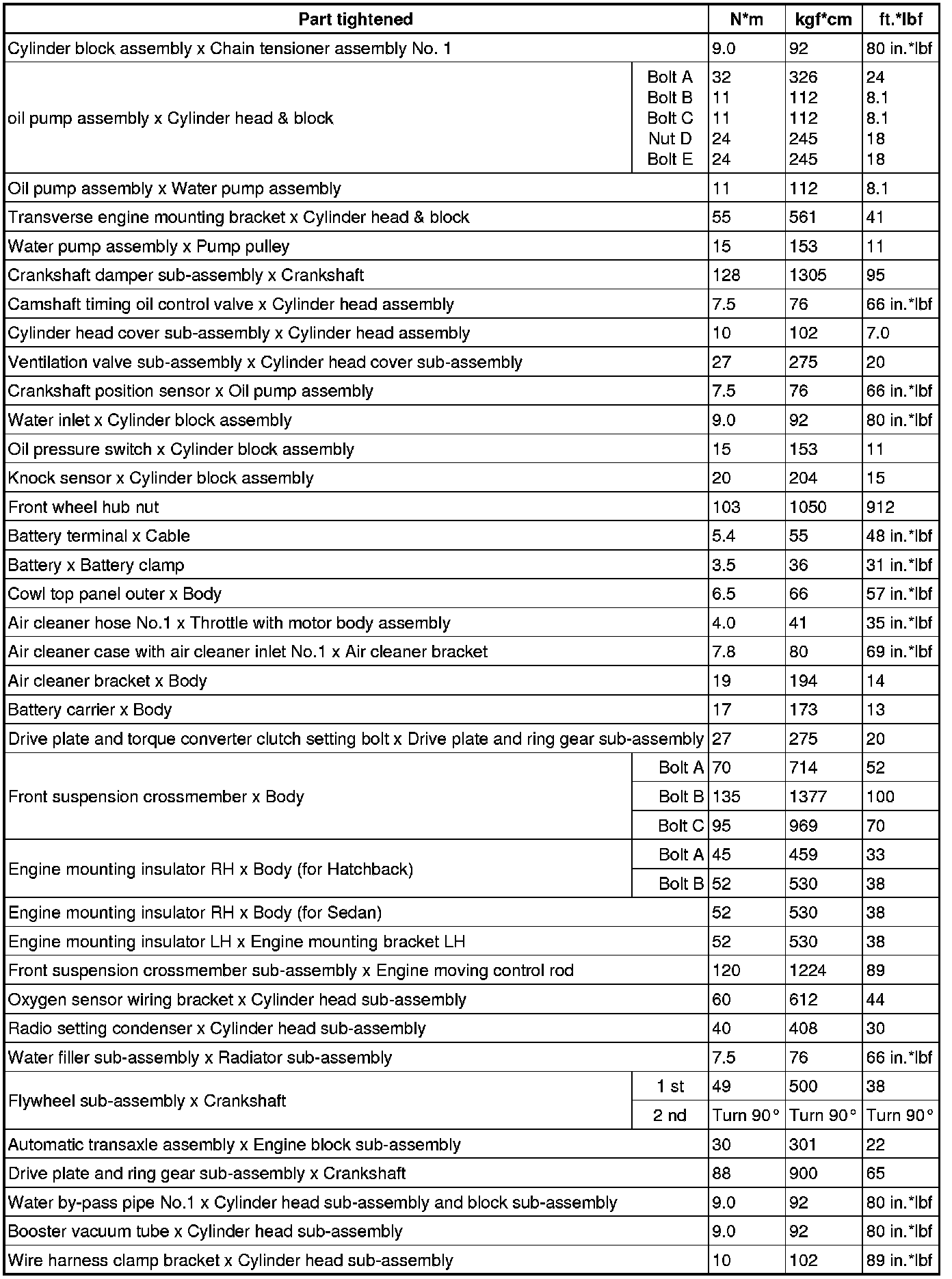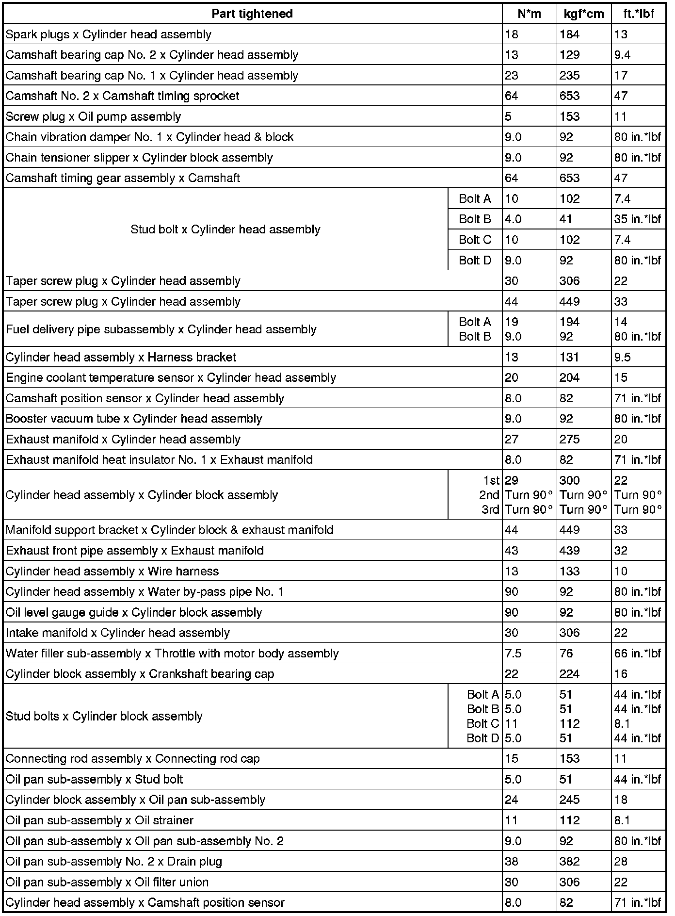 SERVICE SPECIFICATIONS: 1NZ-FE ENGINE MECHANICAL: TORQUE SPECIFICATIONS