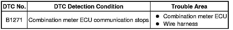 MULTIPLEX COMMUNICATION: MULTIPLEX COMMUNICATION SYSTEM: B1271: Combination Meter ECU Communication Stop
