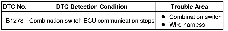 MULTIPLEX COMMUNICATION: MULTIPLEX COMMUNICATION SYSTEM: B1278: Combination Switch ECU Communication Stop