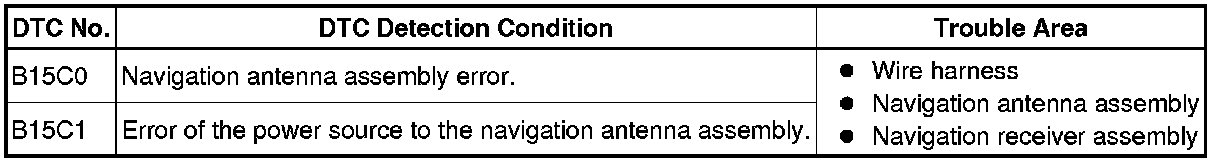 These DTCs are stored when a malfunction occurs in the navigation antenna assembly.