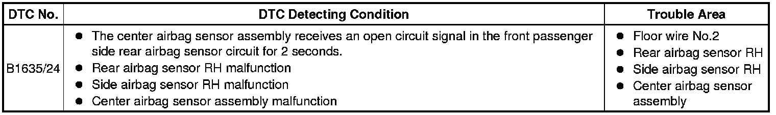 B1635/24 - Front Passenger Side Rear Airbag Sensor Circuit Malfunction