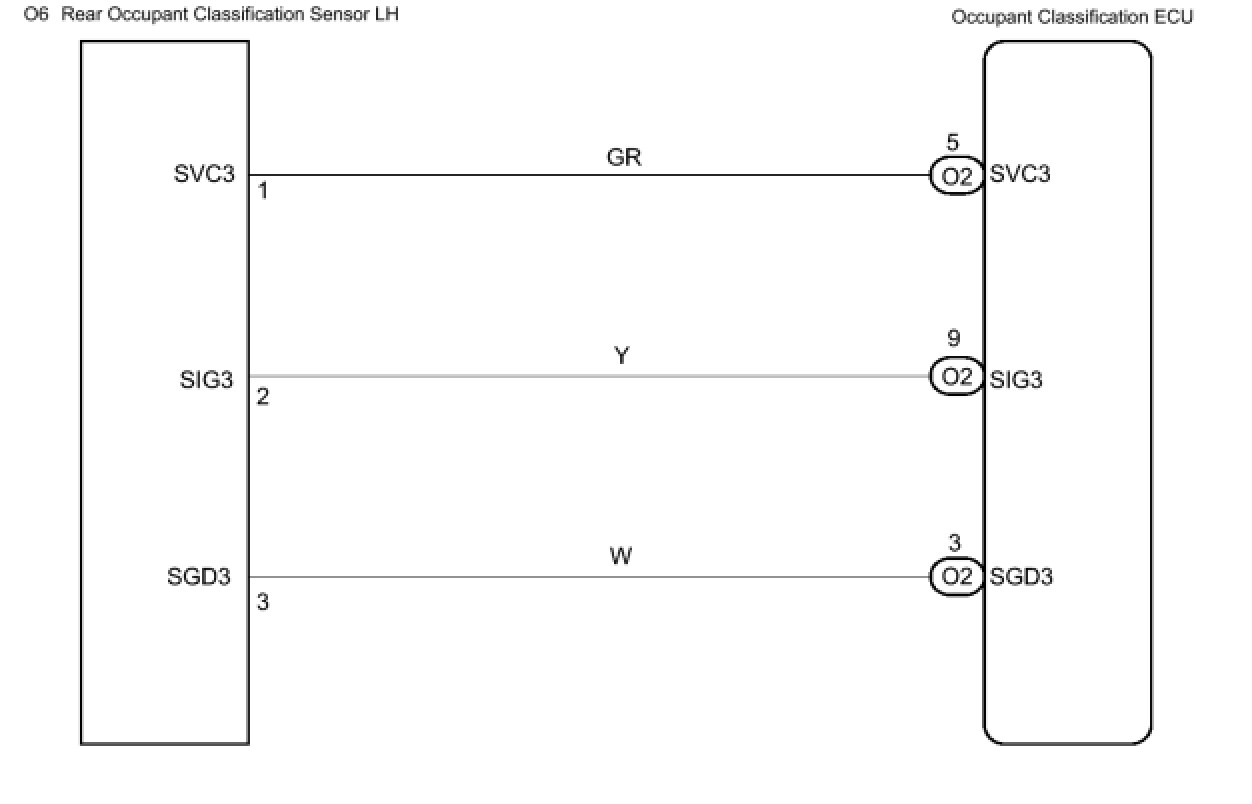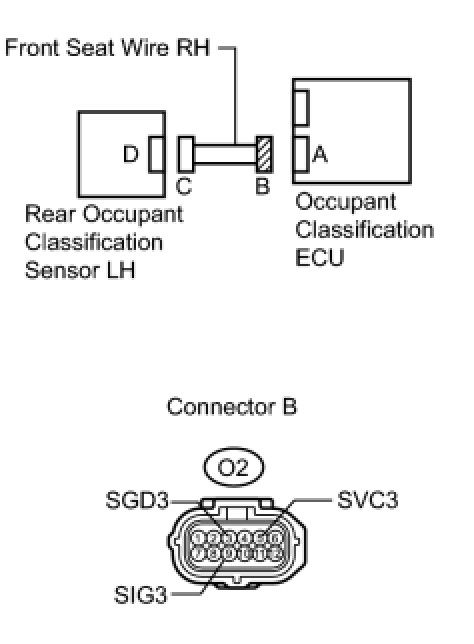 The rear occupant classification sensor LH circuit consists of the occupant classification ECU and the rear occupant classification sensor LH.