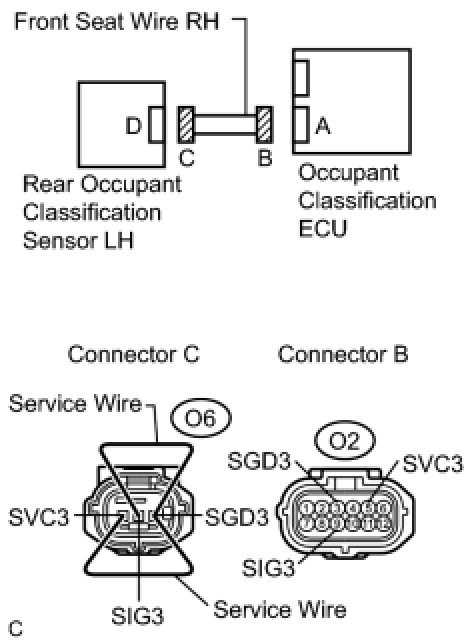 (c) Check that the connectors are properly connected to the occupant classification ECU and the rear occupant classification sensor LH.