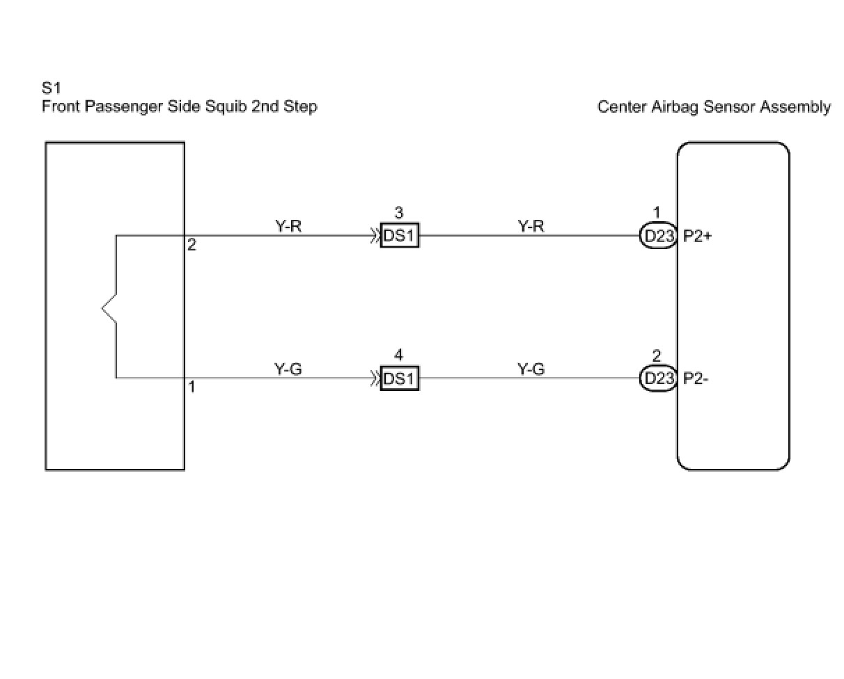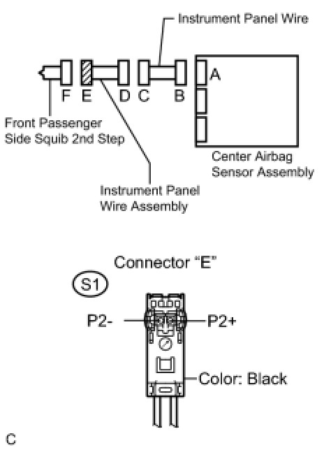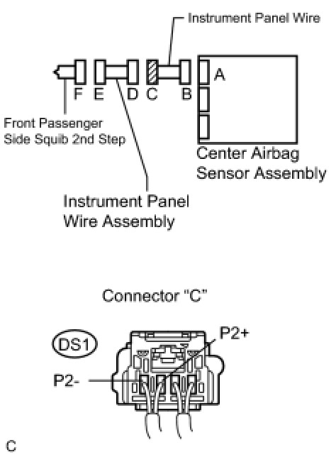 The front passenger side squib 2nd step circuit consists of the center airbag sensor assembly and the front passenger airbag assembly.