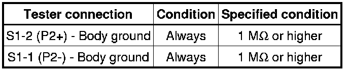 Never connect a tester to the front passenger airbag assembly (front passenger side squib 2nd step) for measurement, as this may lead to a serious injury due to airbag deployment.