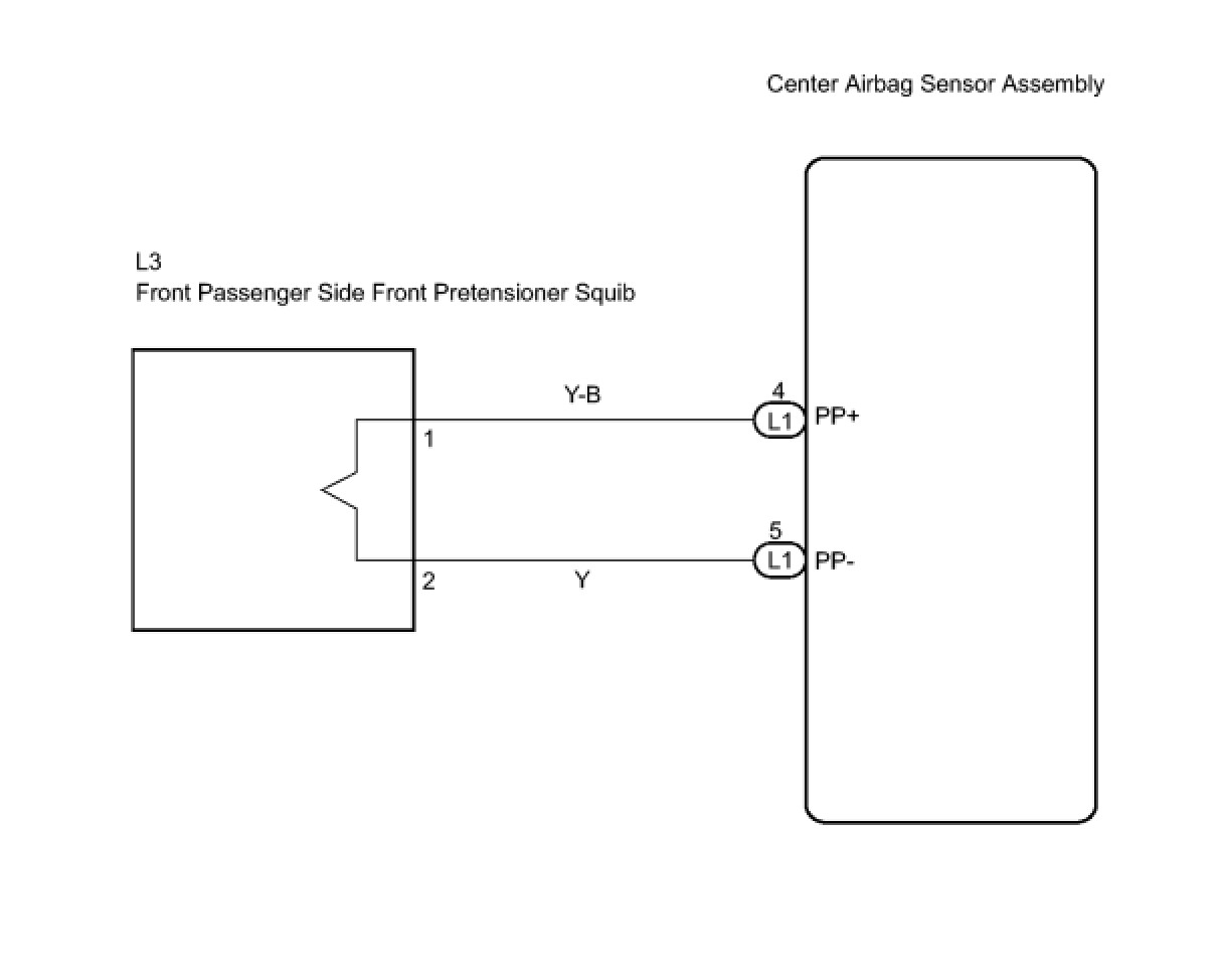 The front passenger side front pretensioner squib circuit consists of the center airbag sensor assembly and the front seat outer belt assembly RH.