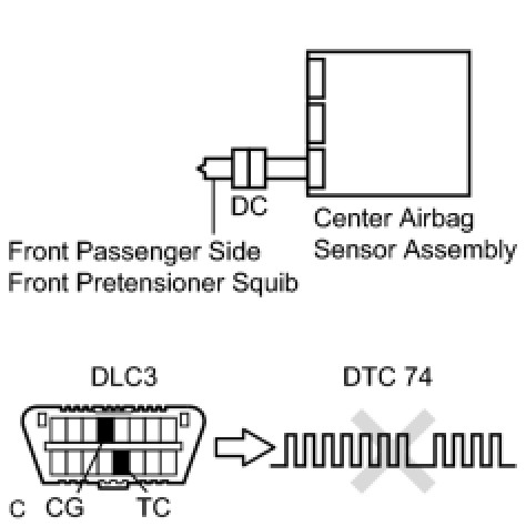 B1908/74 - Short to B+ in Front Passenger Side Front Pretensioner Squib Circuit