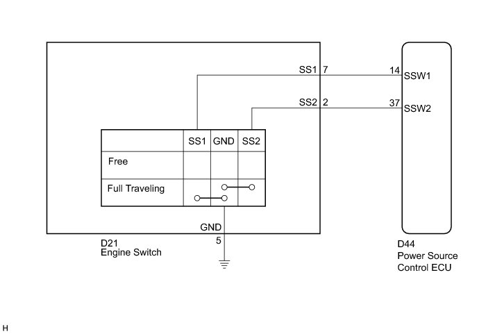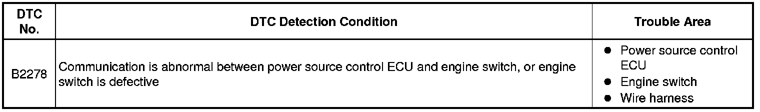 This DTC is output when: 1) a malfunction is detected between the power source control ECU and the engine switch; or 2) either of the switches inside the engine switch is malfunctioning.