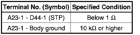 Before performing the inspection procedure, depress the brake pedal and check that the stop lights come on. If the stop lights do not come on, Symptom Related Diagnostic Procedures.