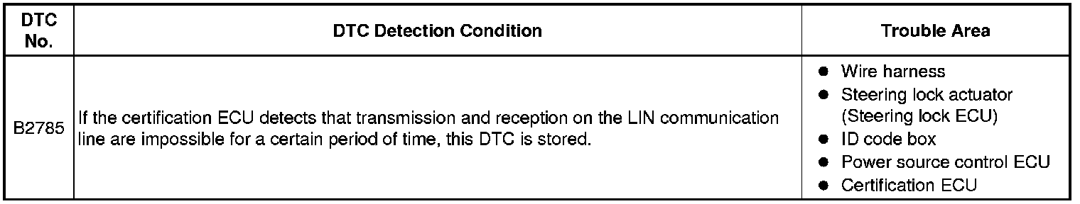 DOOR LOCK: SMART KEY SYSTEM: B2785: Communication Malfunction between ECUs Connected by LIN
