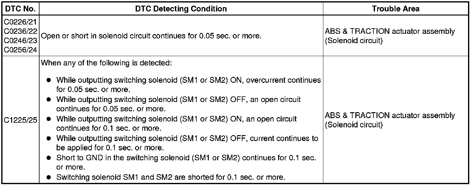 Therefore, solenoid circuit inspection and solenoid unit inspection cannot be performed. Be sure to check if the DTC code is output before replacing the ABS & TRACTION actuator assembly.