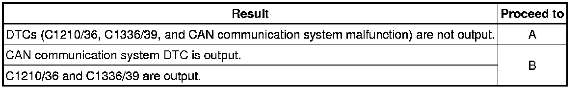 (e) Check that no DTCs for zero point calibration of the yaw rate sensor undone (C1210/36) and for zero point calibration of the acceleration sensor undone (C1336/39) are output.