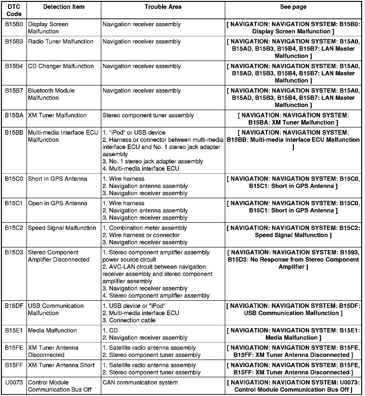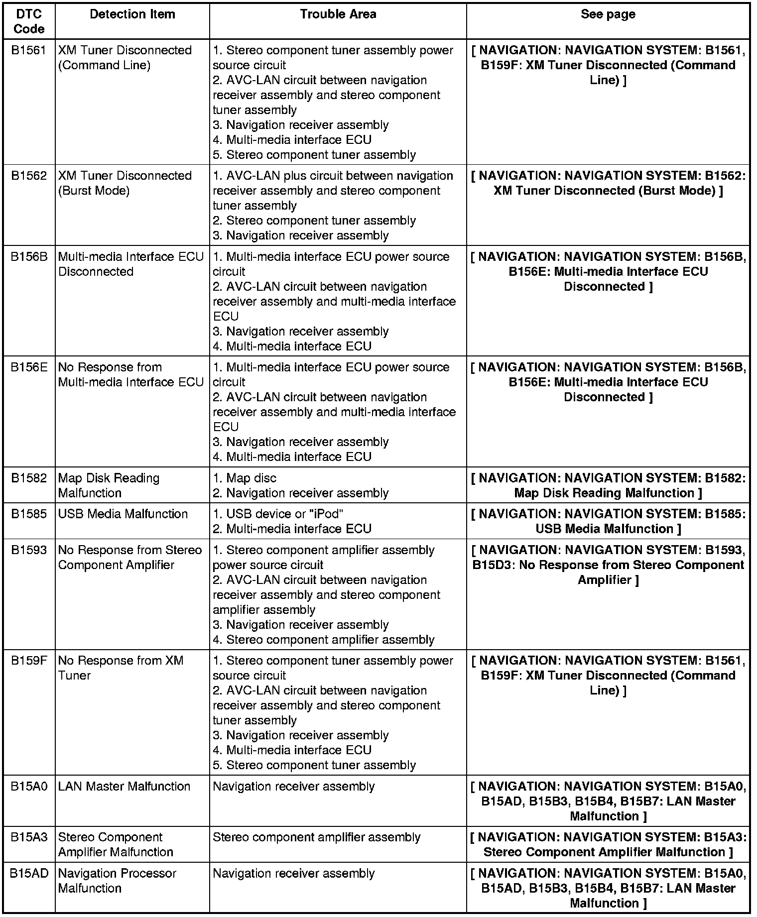 NAVIGATION: NAVIGATION SYSTEM: DIAGNOSTIC TROUBLE CODE CHART