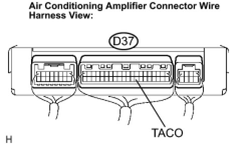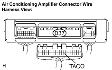 The ECM sends the engine speed signal to the TACO terminal of the A/C amplifier. The A/C amplifier reads the difference between compressor speed and engine speed. When the difference becomes too big, the A/C amplifier determines that the compressor locks, and turns the magnetic clutch off.