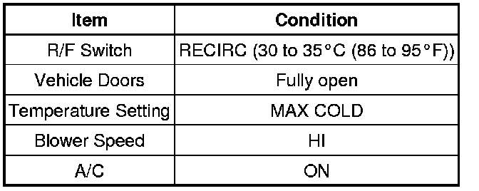 (1) Prepare the vehicle according to the chart below.