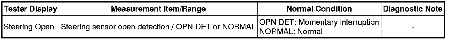 * When the speed sensor or the yaw rate sensor has trouble, DTCs for the steering angle sensor may be output even when the steering angle sensor is normal. When DTCs for the speed sensor or yaw rate sensor are output together with other DTCs for the steering angle sensor, inspect and repair the speed sensor and yaw rate sensor first, and then inspect and repair the steering angle sensor.