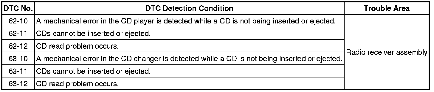AUDIO / VISUAL: AUDIO AND VISUAL SYSTEM: 62-10-62-12,63-10-63-12: CD Player Mechanical Error