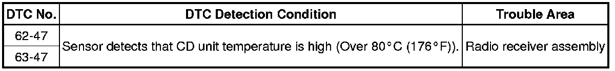 AUDIO / VISUAL: AUDIO AND VISUAL SYSTEM: 62-47,63-47: High Temperature