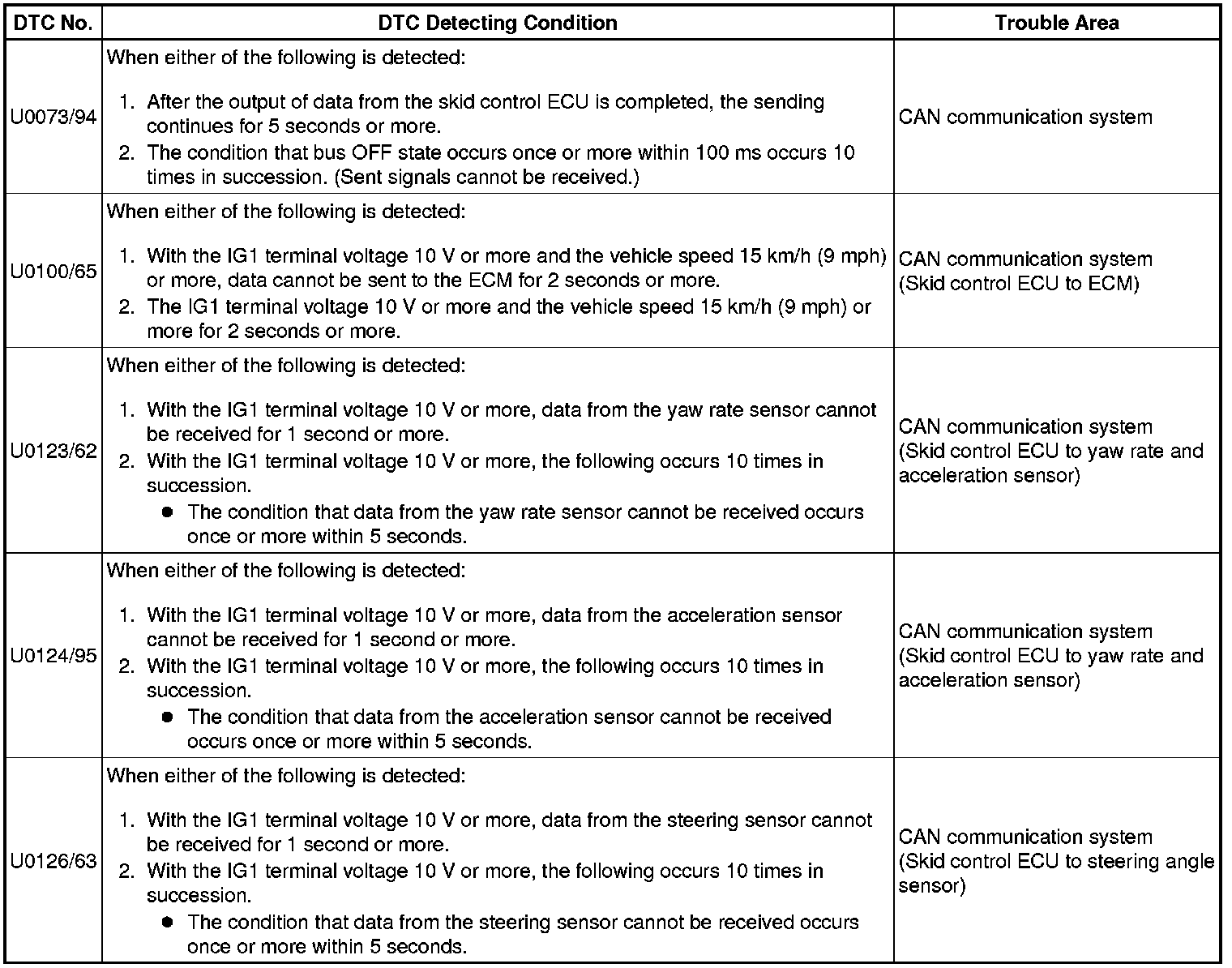 The CAN communication system must be normal when performing troubleshooting for each sensor DTC (for ABS and/or VSC system).