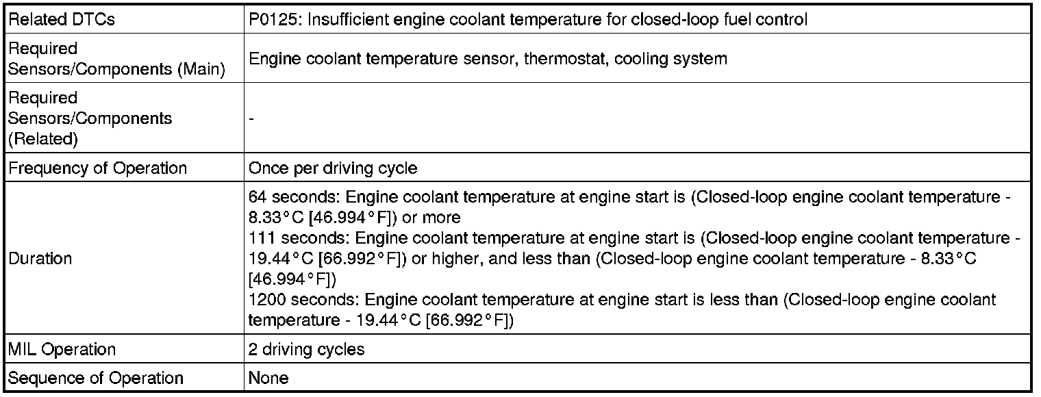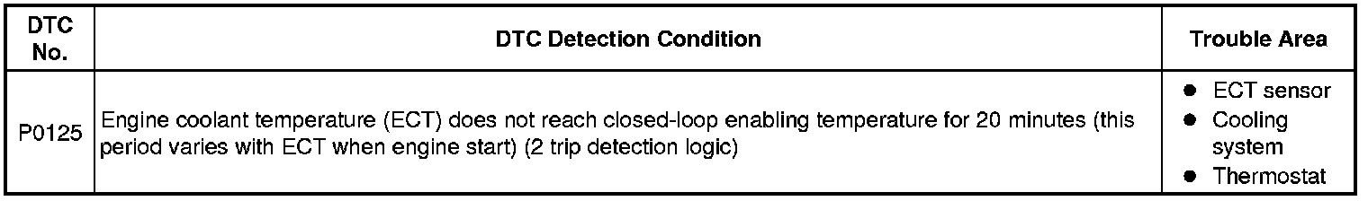 2GR-FE ENGINE CONTROL SYSTEM: SFI SYSTEM: P0125: Insufficient Coolant Temperature for Closed Loop Fuel Control