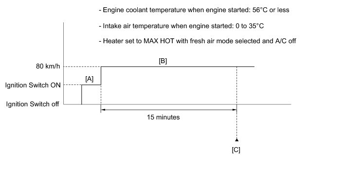7. Start the engine and drive the vehicle at 80 km/h (50 mph) for 15 minutes [B].