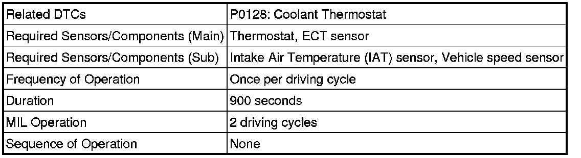 2GR-FE ENGINE CONTROL SYSTEM: SFI SYSTEM: P0128: Coolant Thermostat (Coolant Temperature Below Thermostat Regulating Temperature)