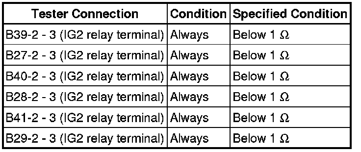 NG -- CHECK HARNESS AND CONNECTOR (IG2 RELAY - FUEL INJECTOR ASSEMBLY)
