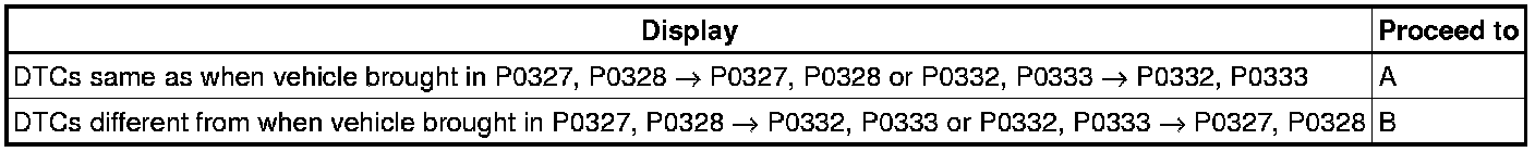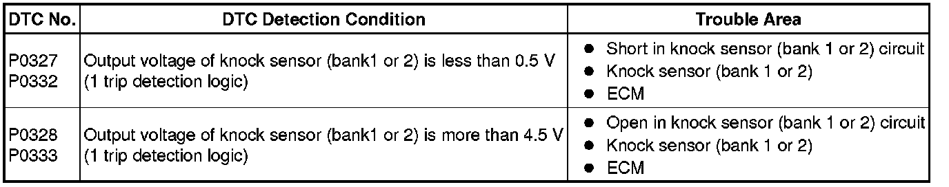 * If DTC P0332 or P0333 has changed to P0327 or P0328, check the knock sensor circuit on the left bank side.