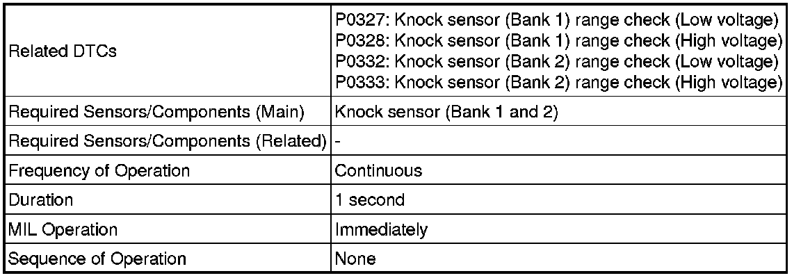 Knock Sensor Range Check (Low voltage) P0327 and P0332: