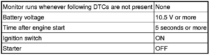 The monitor for DTCs P0327, P0328, P0332 and P0333 begins to run when 5 seconds have elapsed since the engine was started.