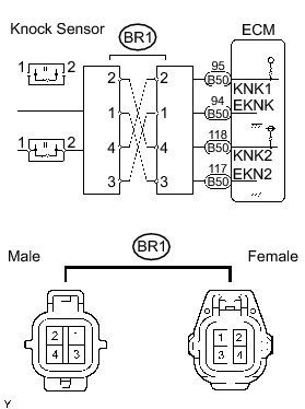 5. CHECK HARNESS AND CONNECTOR (BR1 CONNECTOR - KNOCK SENSOR)