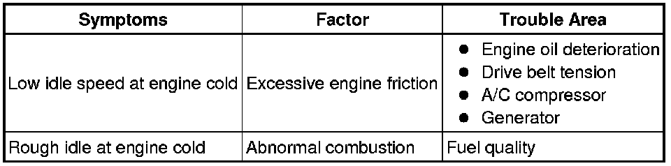 * DTC P050B may be set when the engine shows the symptom as listed below. If necessary, check the trouble area as listed below.