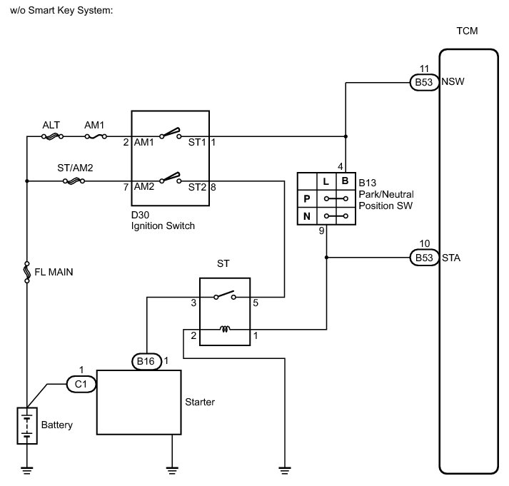 While the engine is being cranked, the positive battery voltage is applied to terminal STA of the TCM.