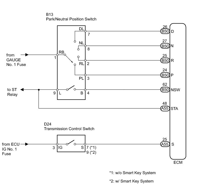 2. CHECK HARNESS AND CONNECTOR (PARK/NEUTRAL POSITION SWITCH - ST RELAY)