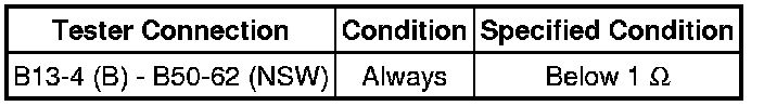 (b) Turn the ignition switch to ON, and measure the voltage according to the value(s) in the table below when the shift lever is moved to each position.