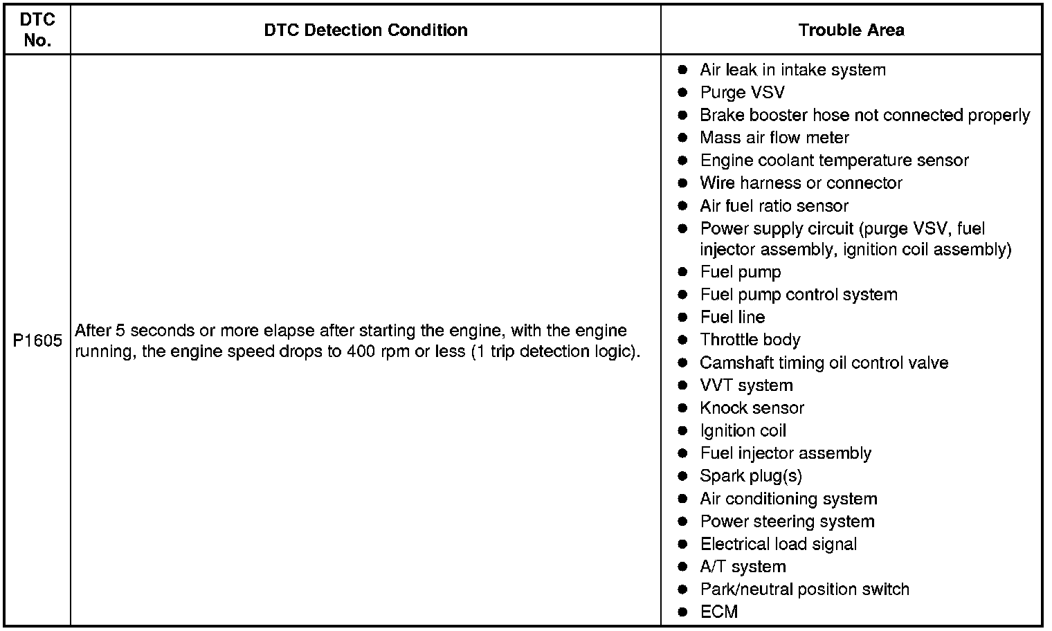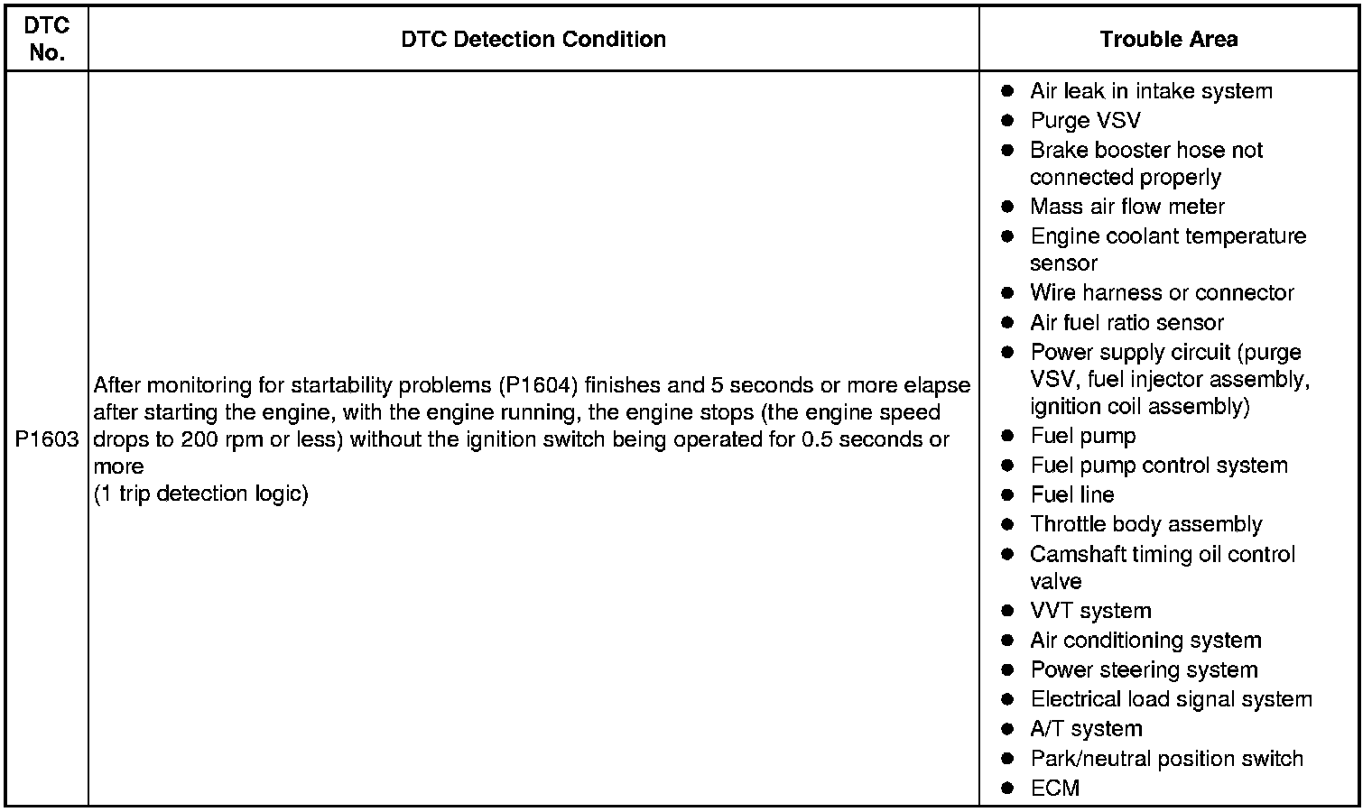 2GR-FE ENGINE CONTROL SYSTEM: SFI SYSTEM: P1603, P1605: Engine Stall History