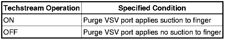 (g) When the purge VSV is operated using the Techstream, check whether the part of the purge VSV applies suction to your finger.