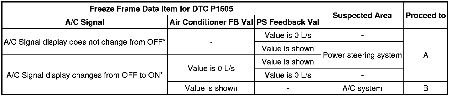* Even if the results are normal, the power steering system may have been malfunctioning. Continue this inspection procedure until step 49, and if there are no problems with other parts, inspect the power steering system (refer to step 57).