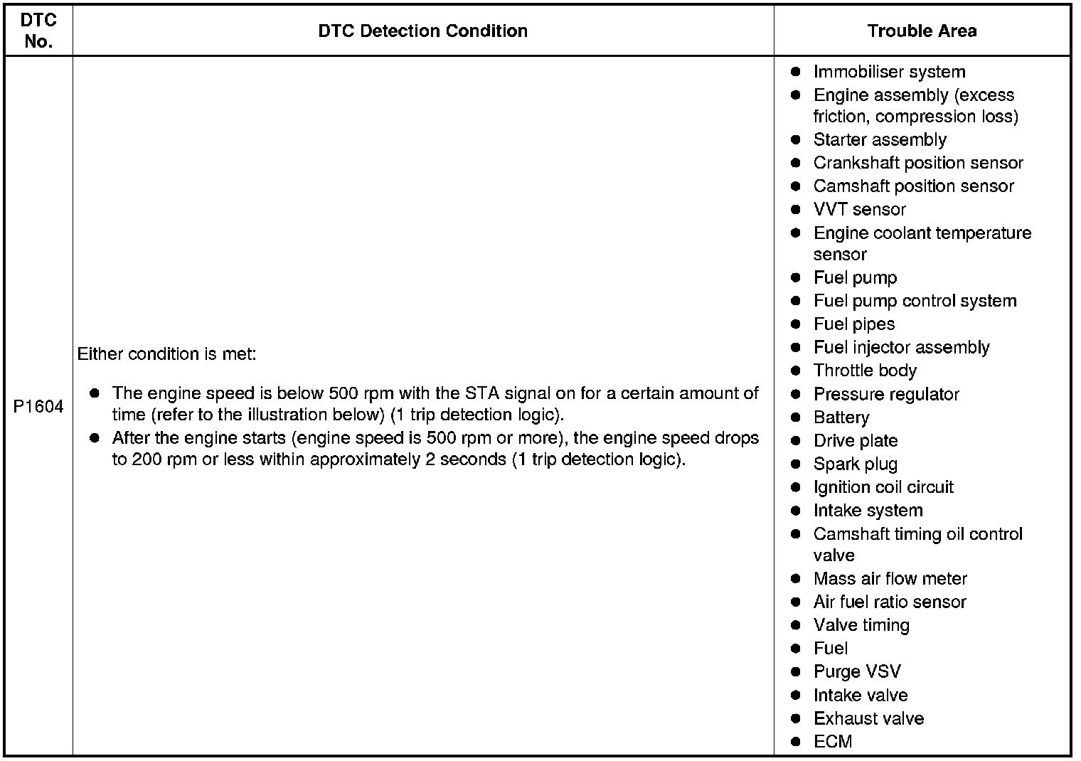 2GR-FE ENGINE CONTROL SYSTEM: SFI SYSTEM: P1604: Startability Malfunction
