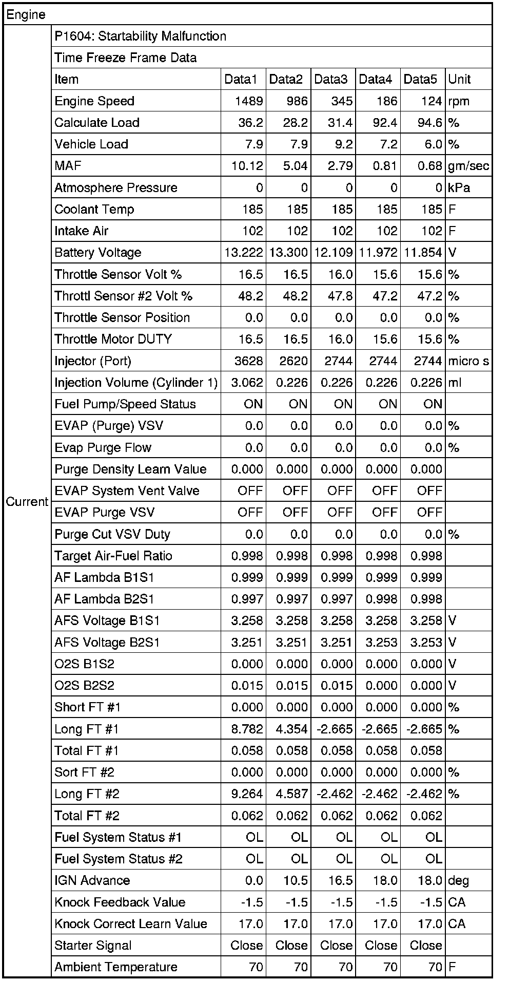 * This freeze frame data shows the actual engine conditions when engine starting trouble occurred.