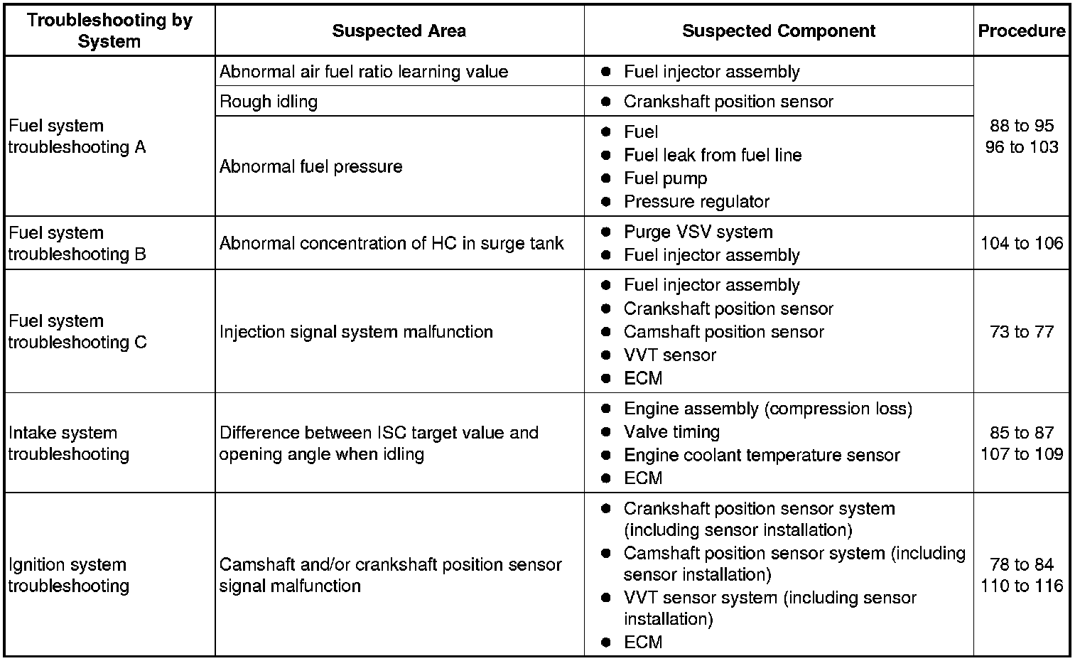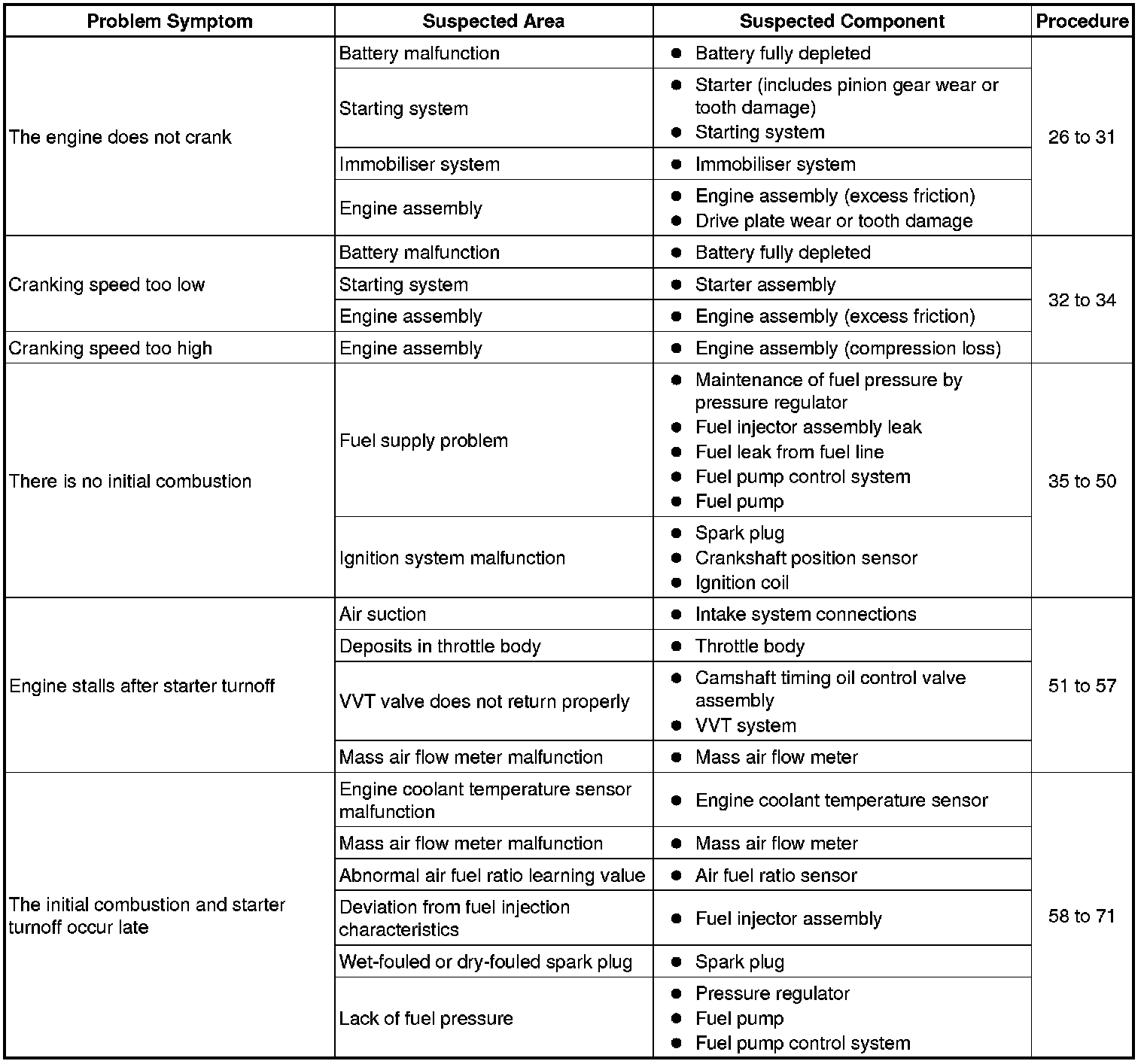 (b) When the malfunction (starting difficulty) can be reproduced, or malfunction conditions are known, perform the following inspections ("Problem symptoms" and "Systems to inspect")