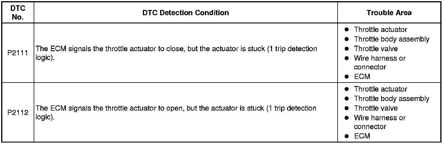 2GR-FE ENGINE CONTROL SYSTEM: SFI SYSTEM: P2111, P2112: Throttle Actuator Control System - Stuck Open