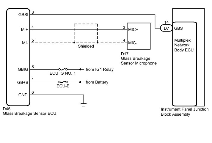 4. CHECK WIRE HARNESS (GLASS BREAKAGE SENSOR ECU - GLASS BREAKAGE SENSOR MICROPHONE)