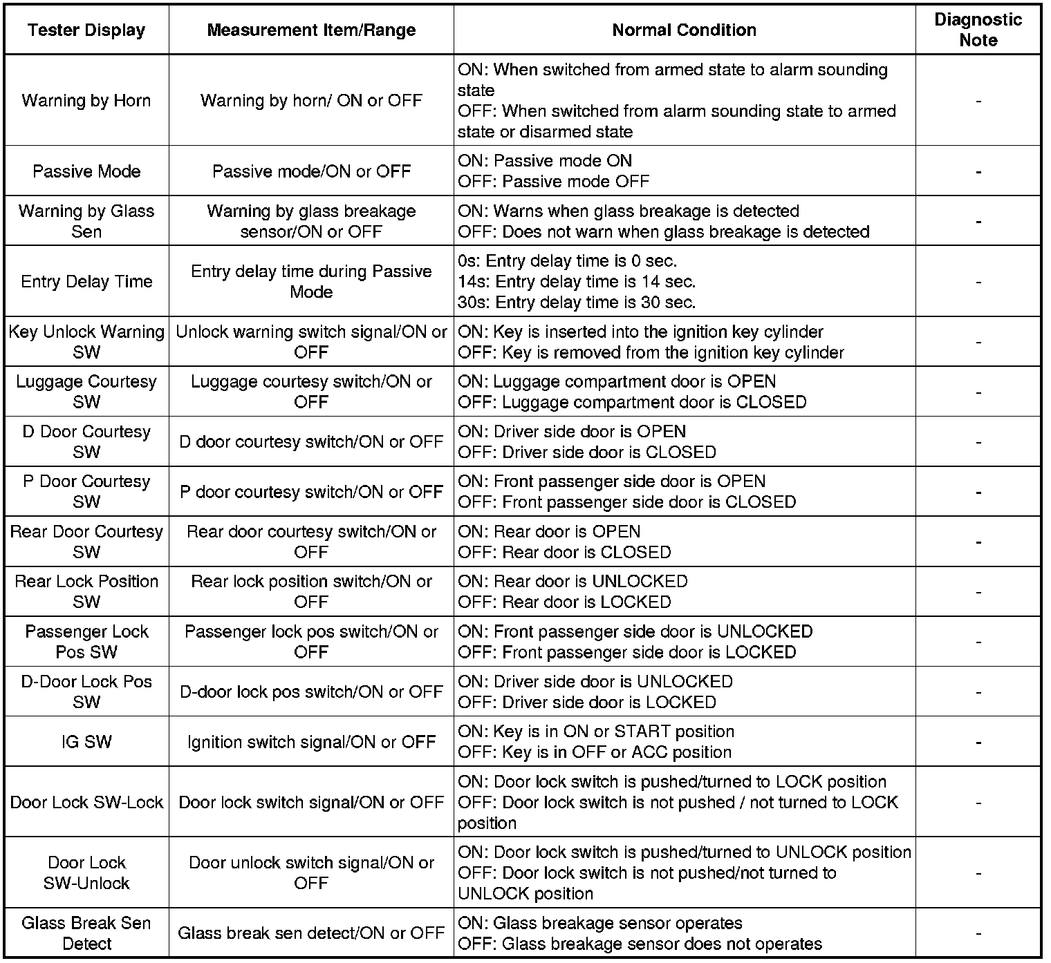 THEFT DETERRENT: THEFT DETERRENT SYSTEM: DATA LIST / ACTIVE TEST